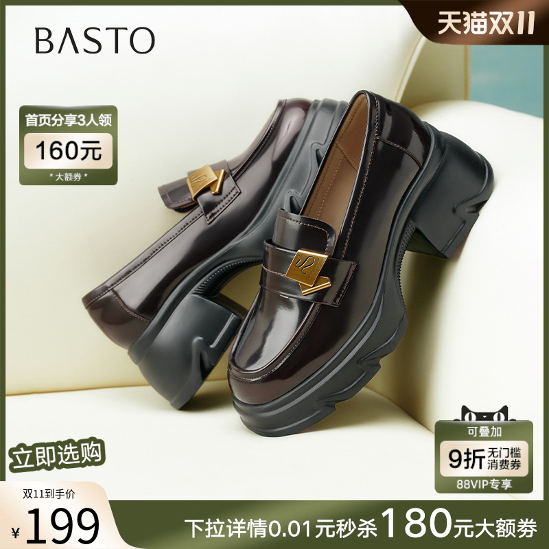 百思图2025秋新款牛皮乐福鞋皮鞋复古英伦风女一脚蹬单鞋C5871CA5