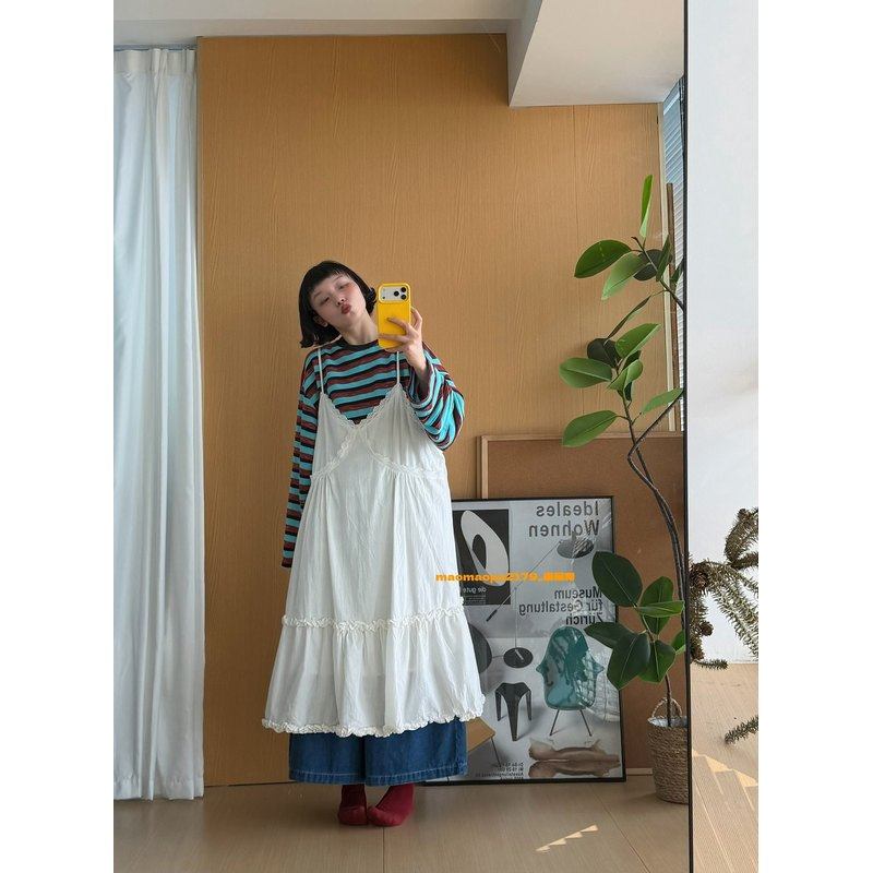森女部落甜美度假风蕾丝拼接设计感百搭宽松吊带连衣裙女新款春季