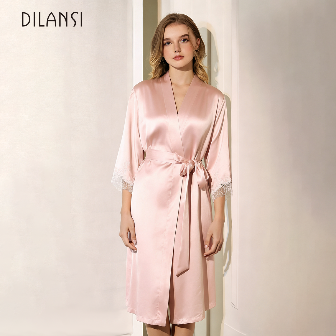 狄兰丝8123真丝睡袍睡衣女性感100%桑蚕丝睡袍套装高级感家居服