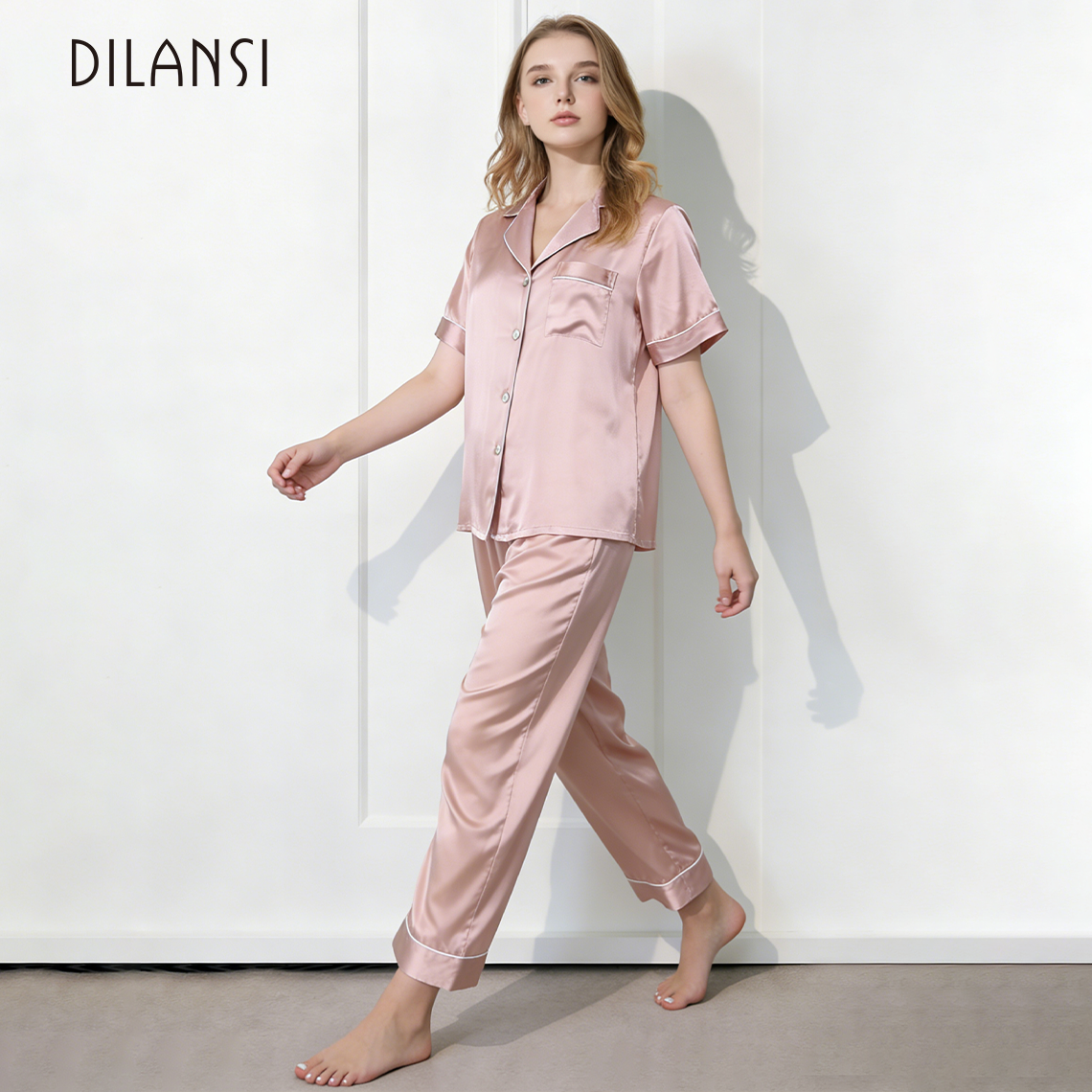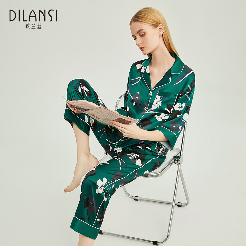 狄兰丝重磅真丝睡衣女新款100%桑蚕丝高级丝绸家居服宽松套装