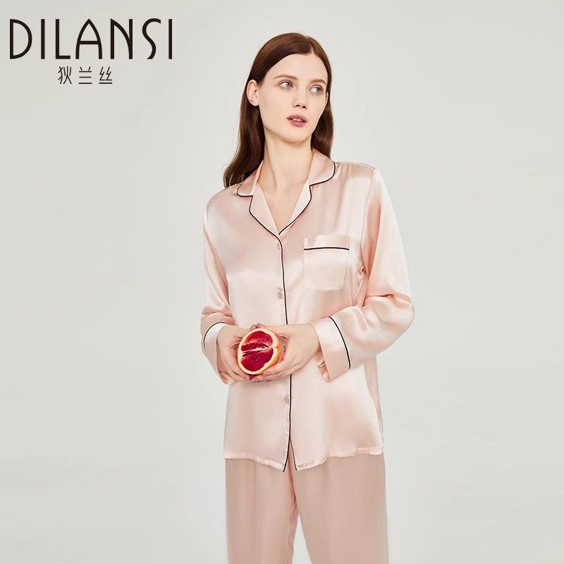 狄兰丝19姆米重磅真丝睡衣女秋新款两件套装丝绸100%桑蚕丝家居服
