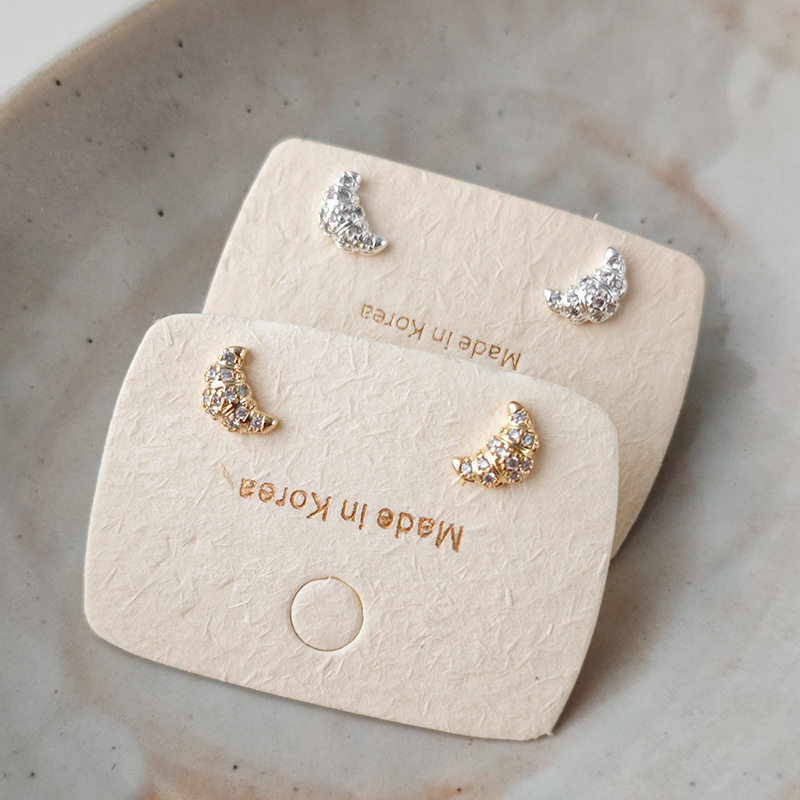 镶钻牛角包耳钉女小众设计感个性简约气质百搭高级感轻奢耳环耳饰