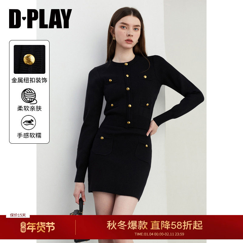 DPLAY黑色针织套装女收腰法式气质时尚搭配毛衣半身裙2026年春