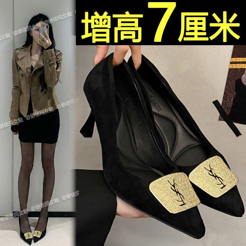 2025春新款12cm尖头法式小高跟鞋细跟性感黑色职业浅口单鞋女红底