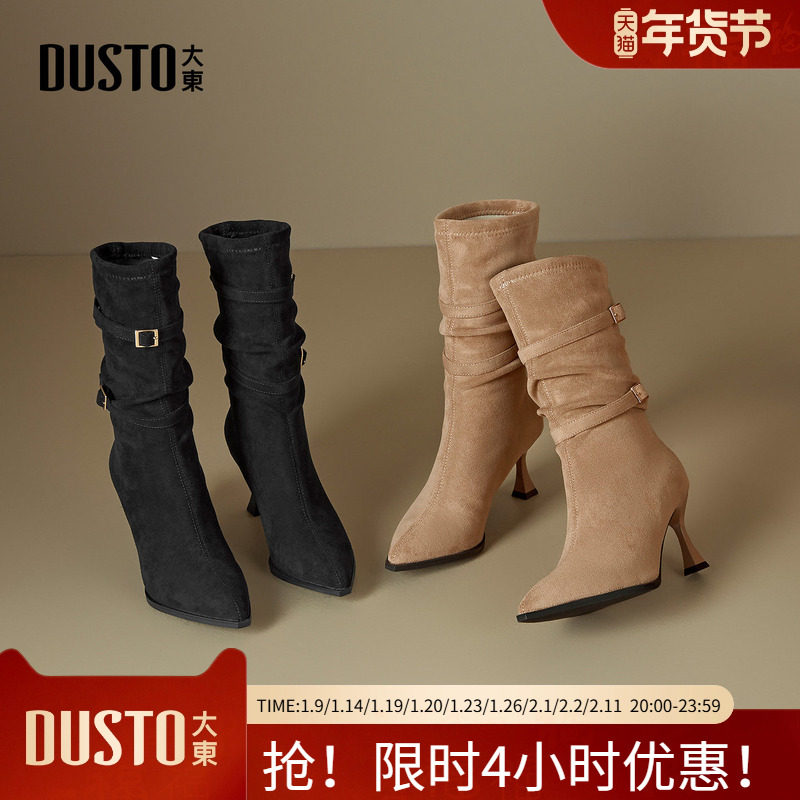 大东袜靴女鞋2025冬季新款时尚休闲简约细跟超高跟套脚尖头D0030