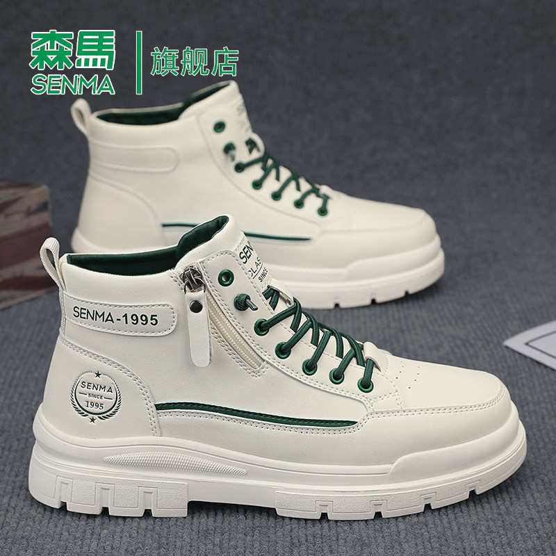 森马高帮男鞋冬季真皮百搭休闲板鞋男士厚底增高运动工装马丁靴子