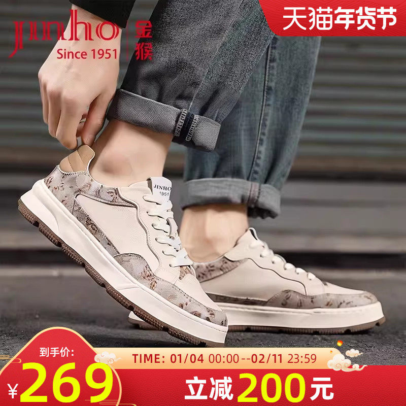 金猴男鞋2025秋季新款牛皮时尚百搭厚底休闲板鞋男士运动小白鞋
