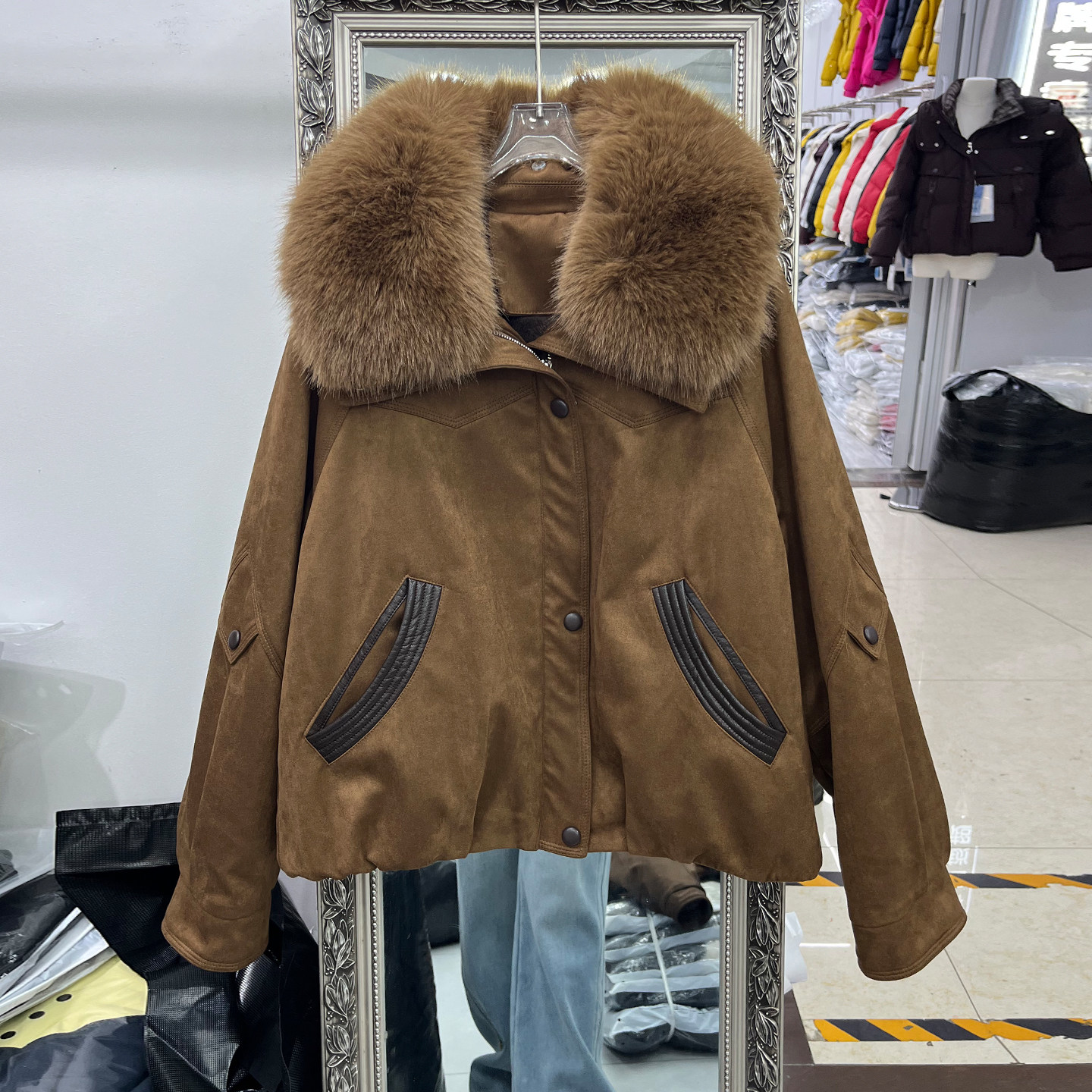 高品质毛领鹿皮绒外套2025秋冬新款韩版简约百搭显瘦加绒短外套女