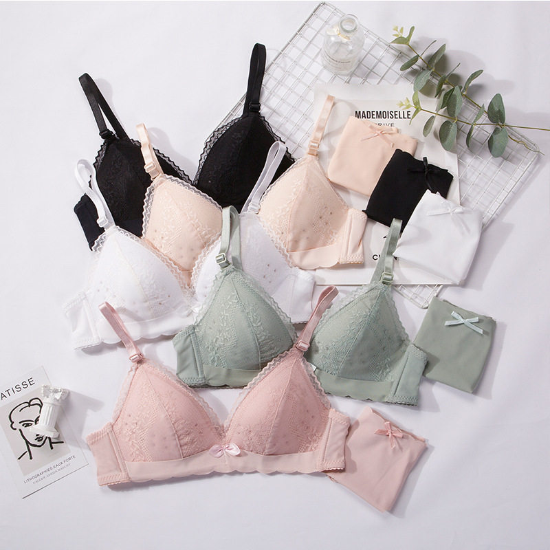 无钢圈少女胸罩轻薄透气美背女士内衣套装性感蕾丝三角杯文胸套装
