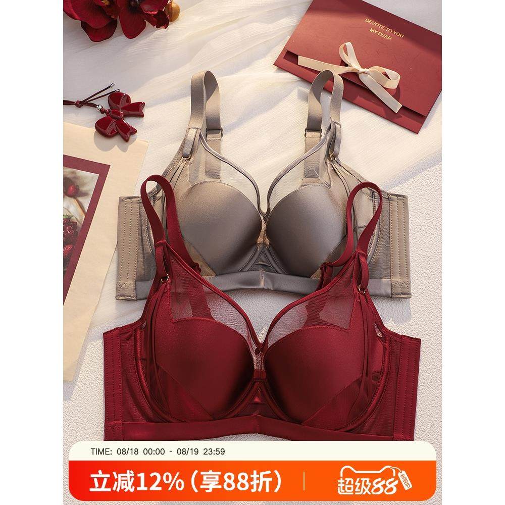 新品爆款本命年红色内衣套装性感薄款大胸显小收副乳调整型文胸罩
