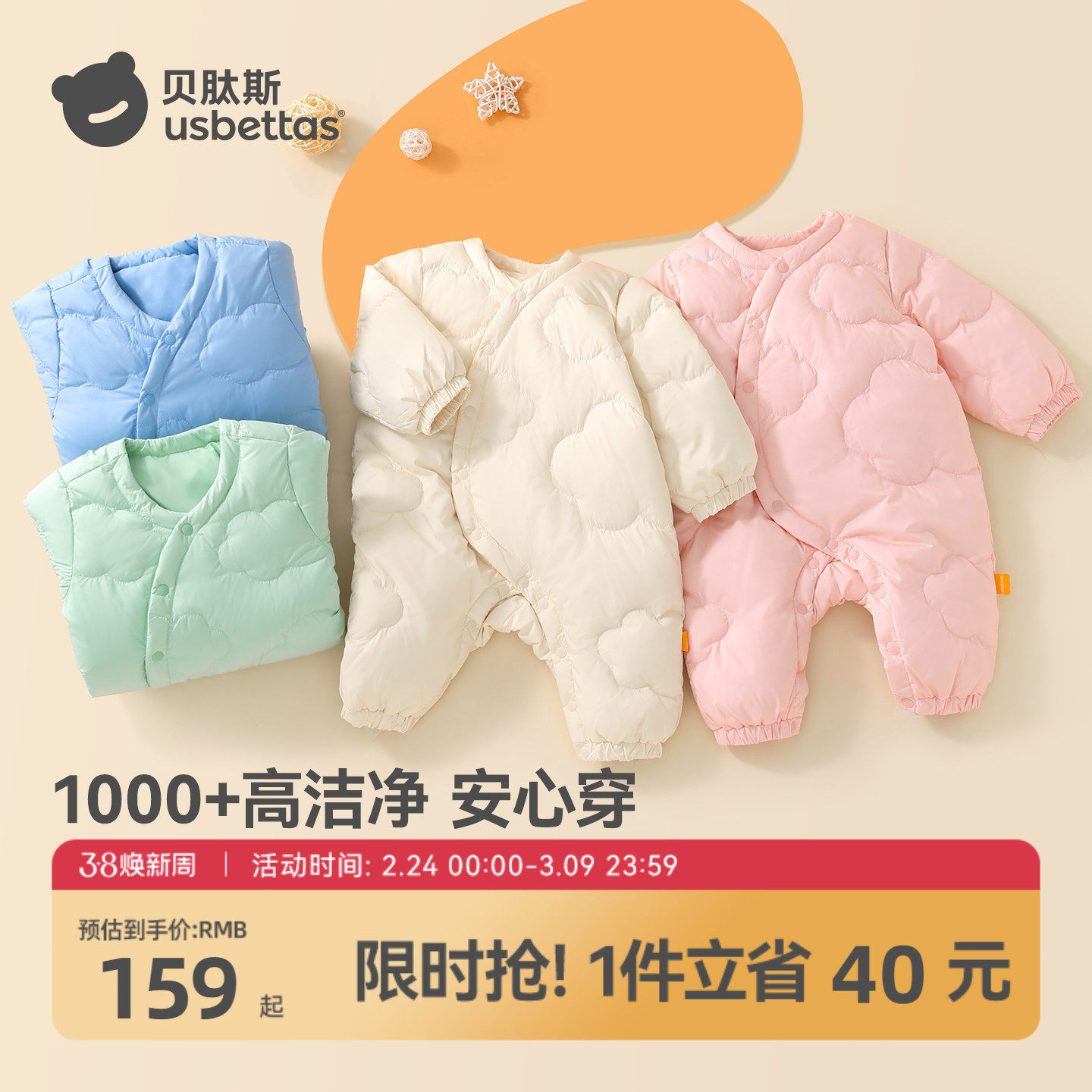 贝肽斯婴儿羽绒服连体哈衣秋冬季新生儿男女宝宝加厚保暖外出爬服