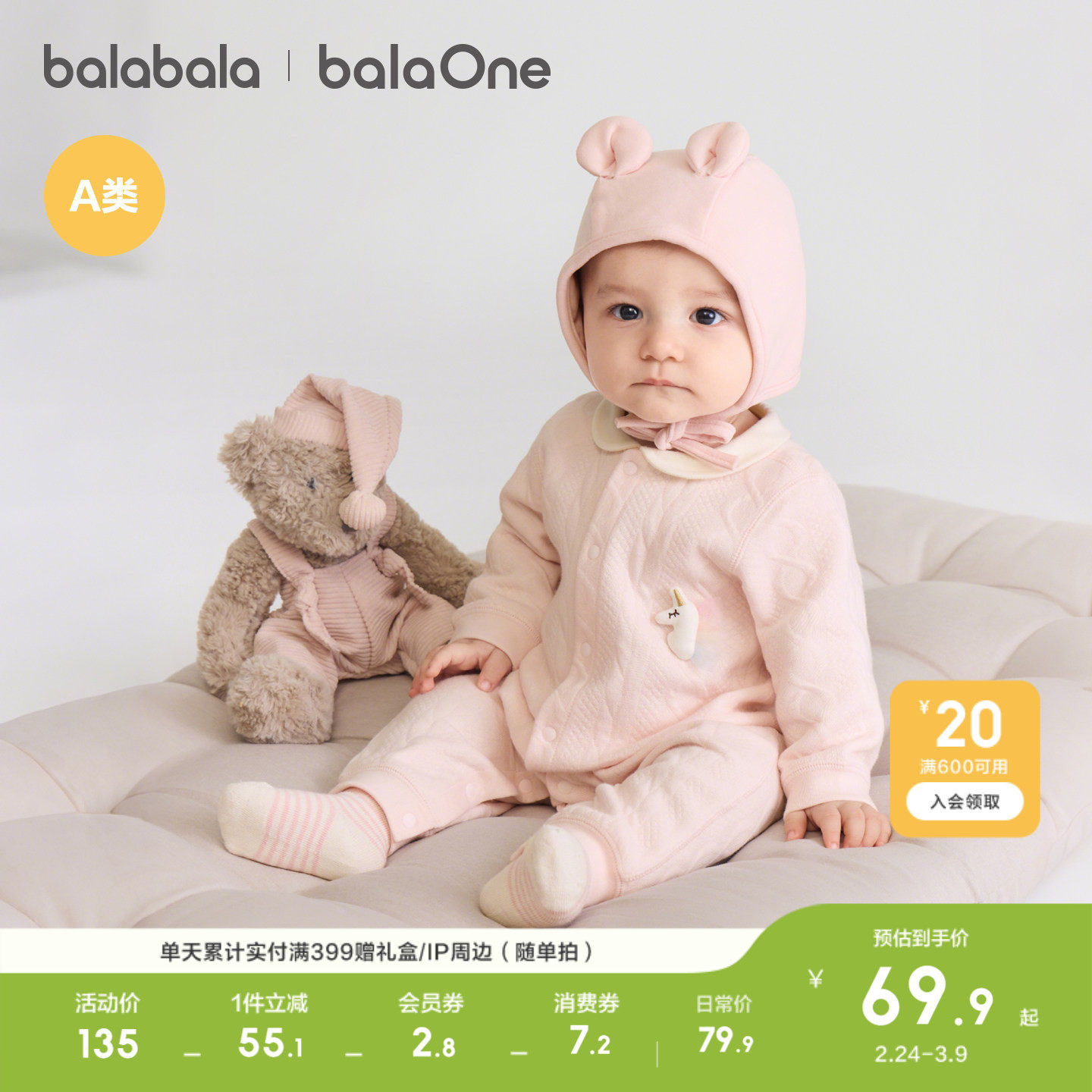 巴拉巴拉童装婴儿连体衣新生儿宝宝爬服2026新款夹棉衣服加厚萌趣