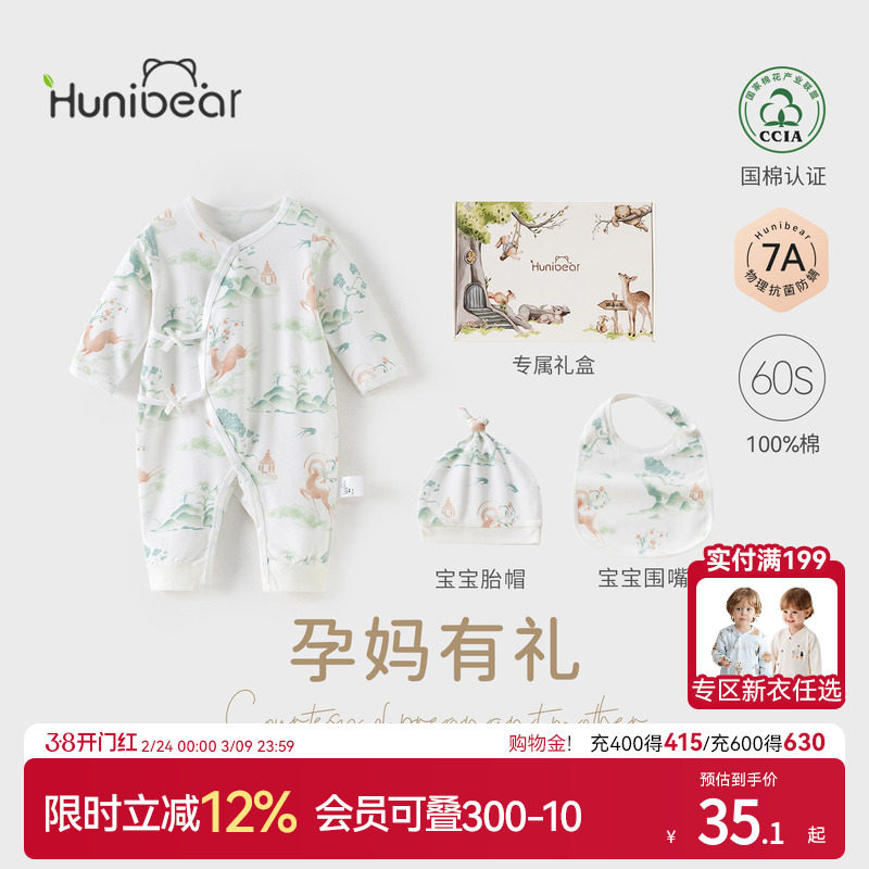 【孕妈有礼2.0-新客39.9起】欢喜小熊新生儿连体衣婴儿哈衣礼盒装