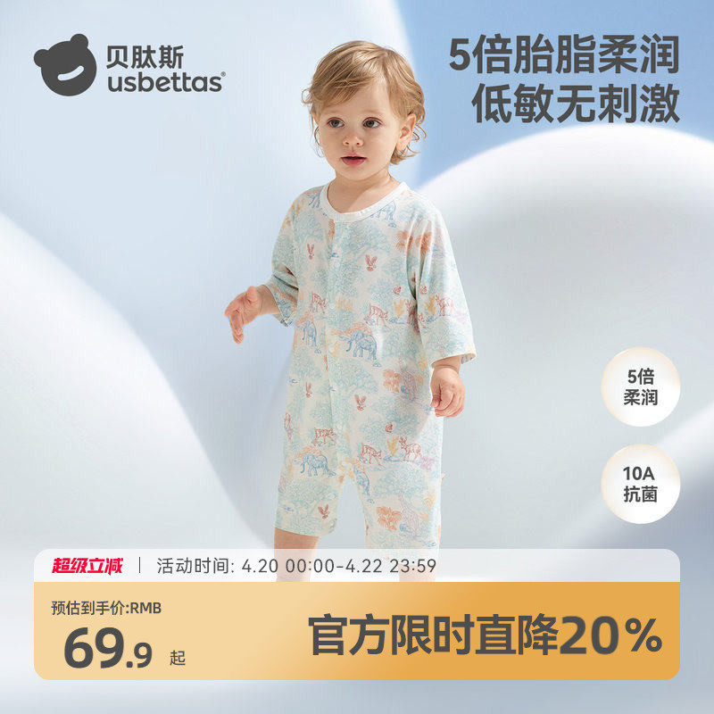 贝肽斯[胎脂皮]婴儿衣服春夏薄款新生儿连体衣男女宝宝哈衣透气