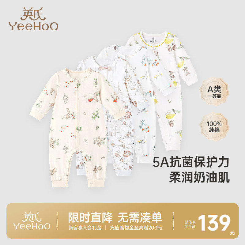 英氏婴儿春季连体衣乳木果宝宝哈衣秋冬新生儿纯棉衣服春秋款爬服