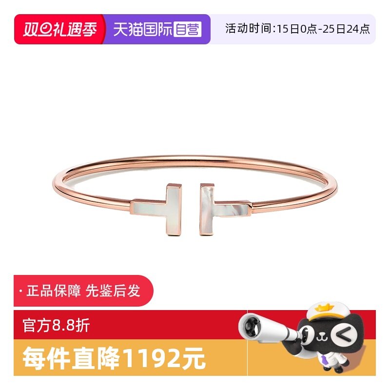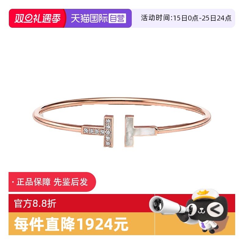 【自营】中古99新蒂芙尼T系列18K玫瑰金珍珠贝母手镯镶钻中号手镯