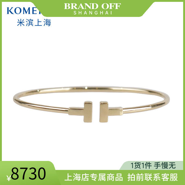 中古「95新」TIFFANY(蒂芙尼)T线圈手镯中号窄式750黄金16cm手镯