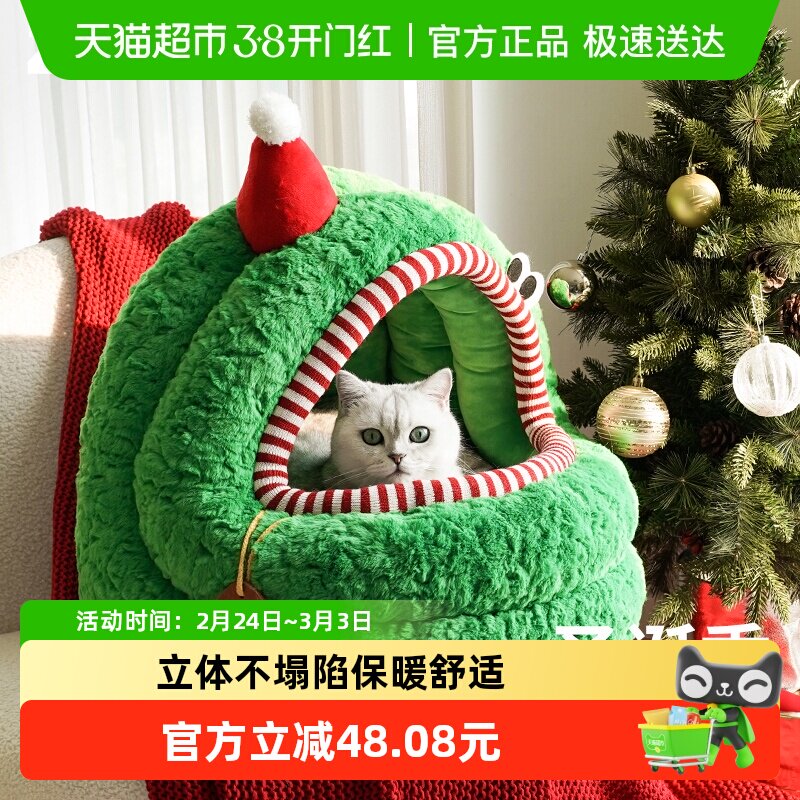 zeze圣诞绿茸茸蒙古包猫窝冬季保暖半封闭狗窝大空间可拆洗宠物窝