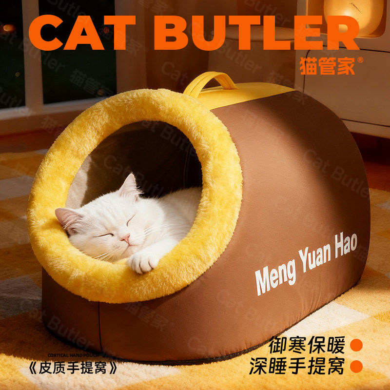 猫窝冬季保暖封闭式安全感毛绒拖鞋手提狗窝冬天加厚蒙古包宠物窝