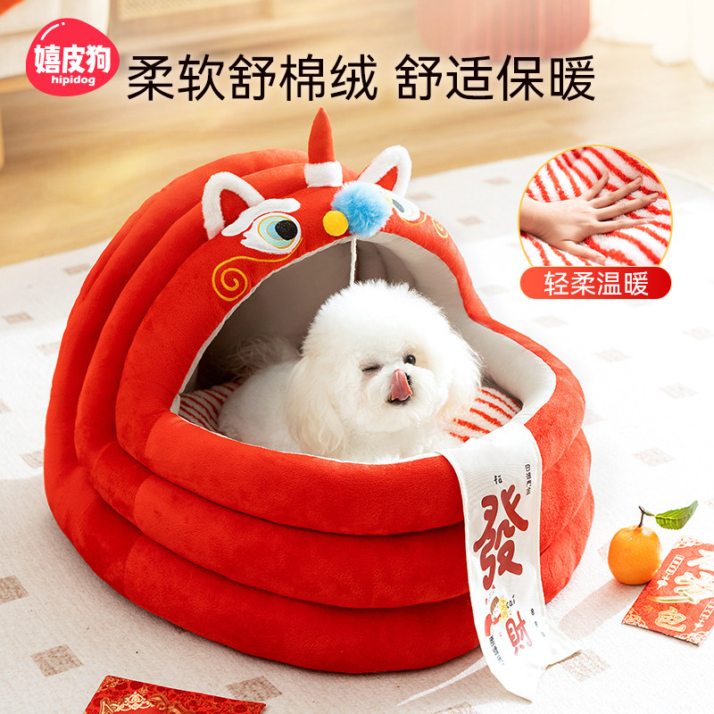 圣诞狗窝冬季保暖苹果窝蒙古包厚安全感半封闭冬天保暖大空间猫窝