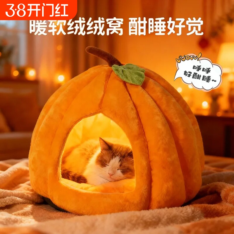 猫窝四季通用冬季狗窝半封闭安全感睡窝蒙古包猫屋南瓜加厚宠物窝