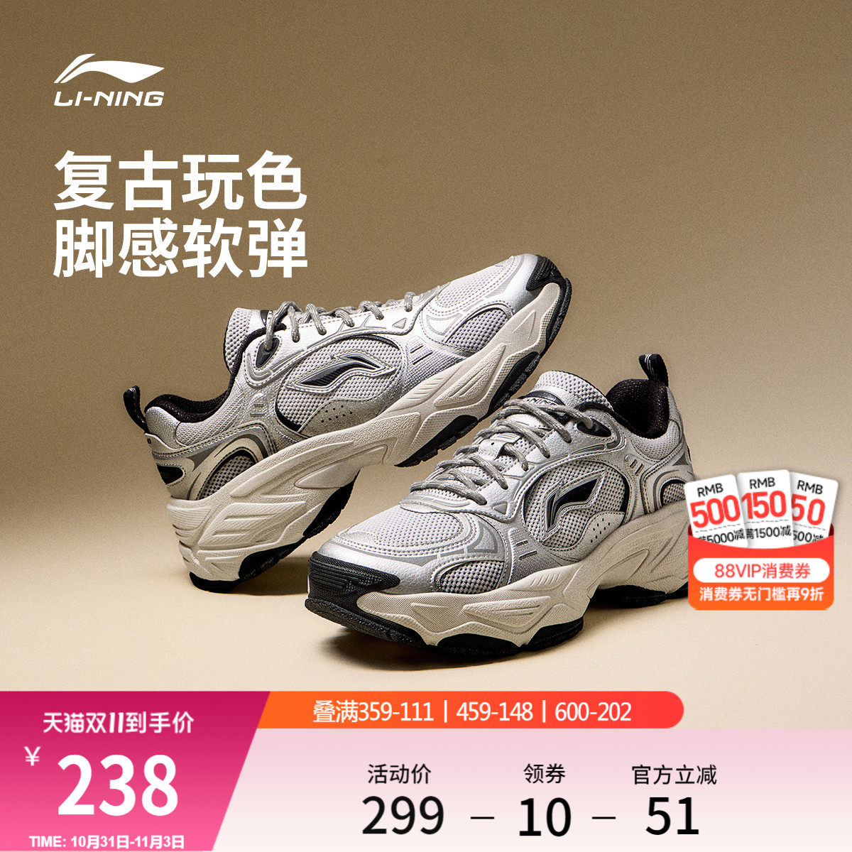 李宁红糖2丨休闲鞋2025秋季新款复古老爹鞋厚底增高银色运动鞋男