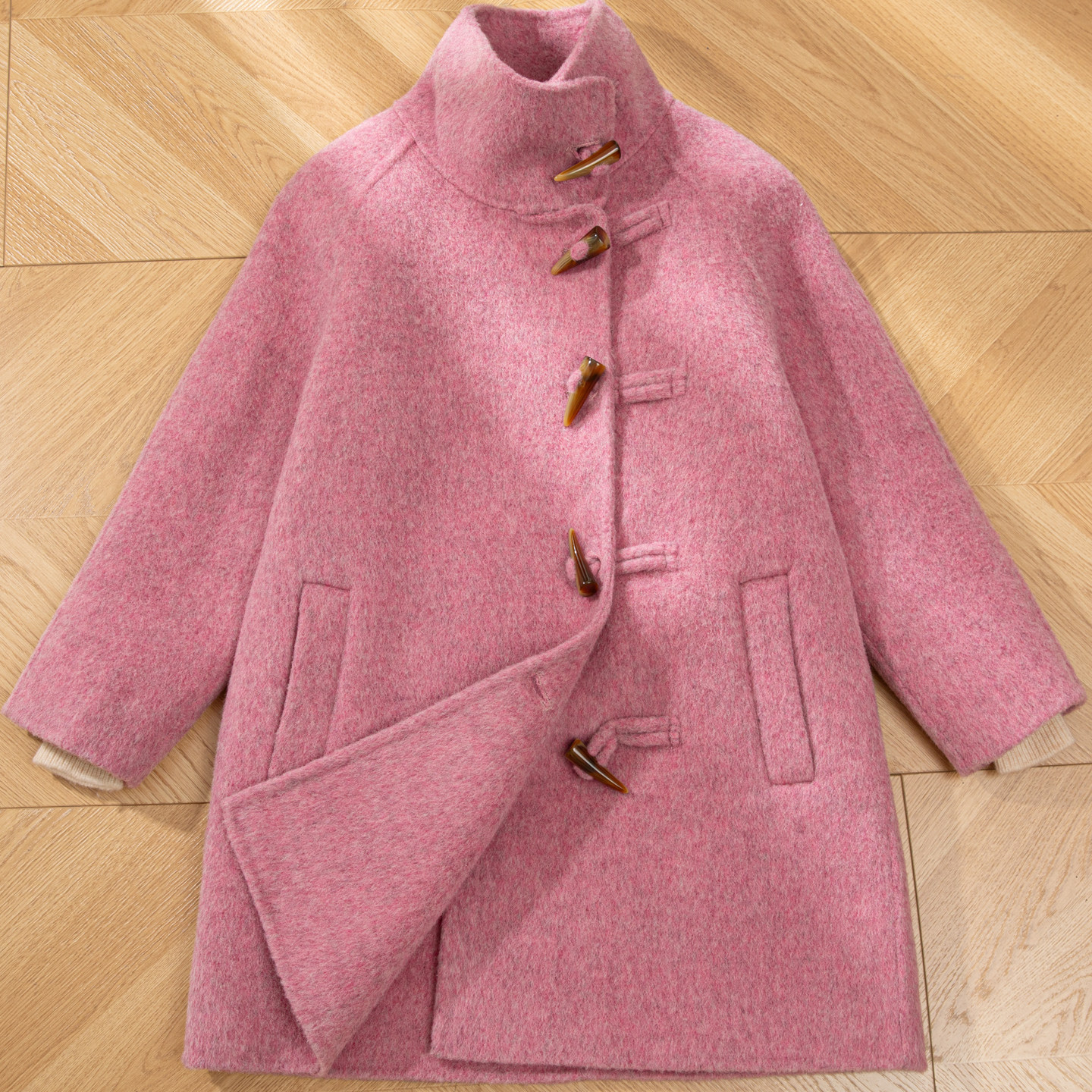 OPCP儿童双面羊毛大衣秋冬新款女童呢子外套亲子风衣牛角扣中长款