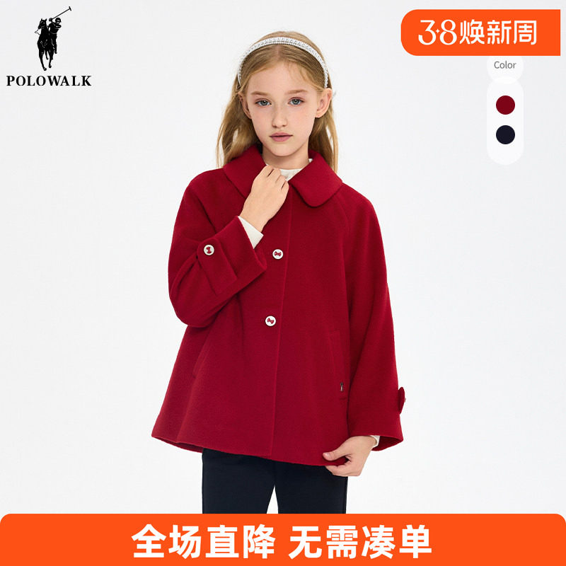 POLOWALK童装 女童大衣中长款2025秋冬新款儿童翻领外套呢子时尚