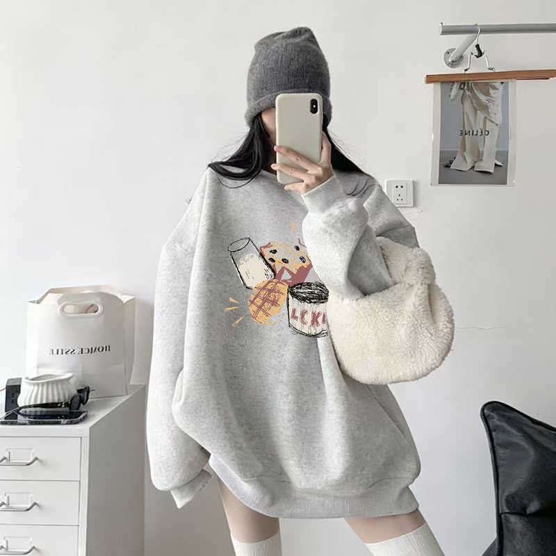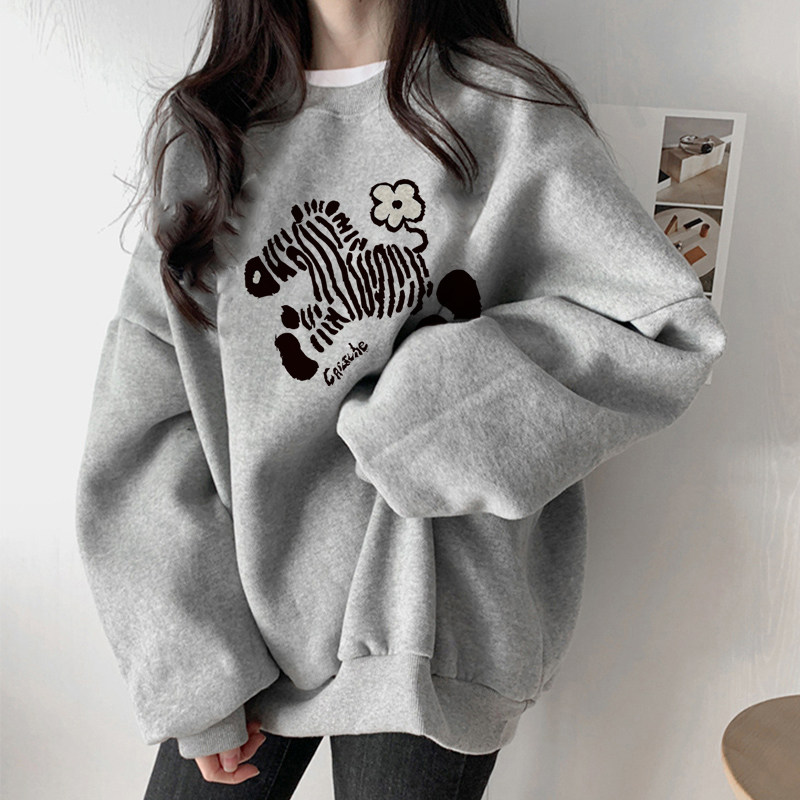 灰色女士卫衣2025新款爆款秋冬季加绒加厚韩系慵懒风外套oversize