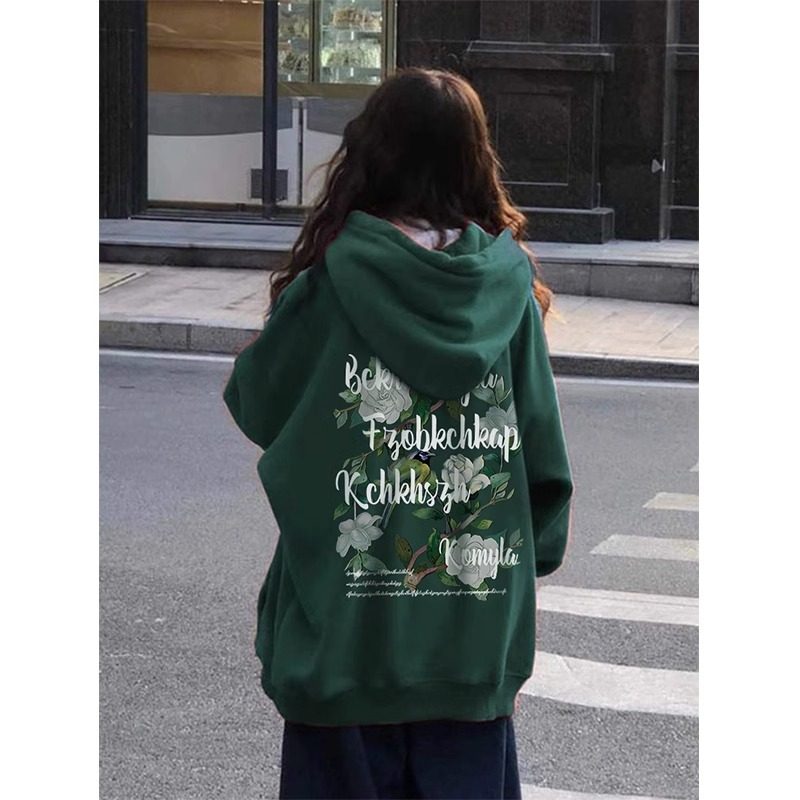 美式复古oversize卫衣女秋冬大码加绒连帽开衫外套显瘦宽松上衣女
