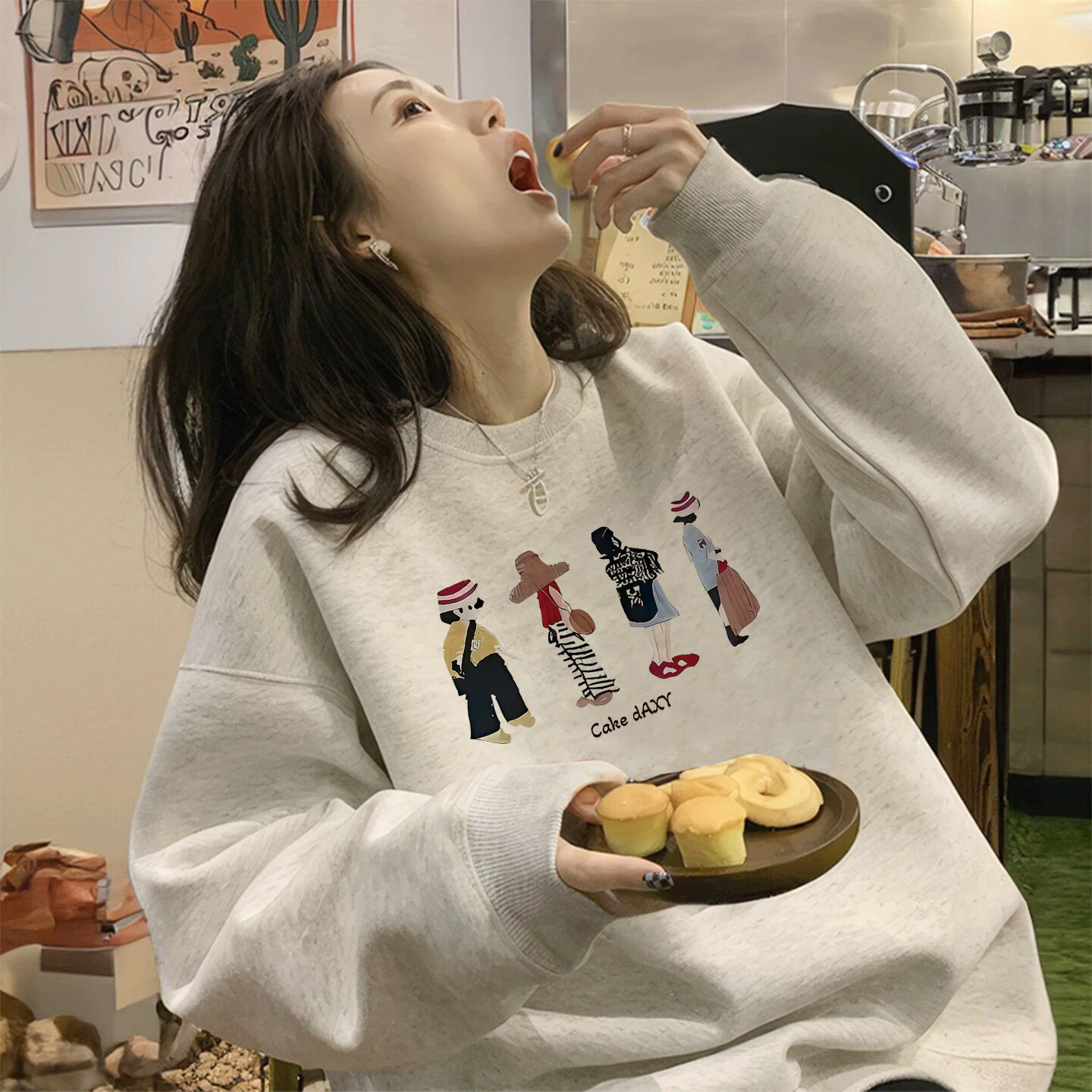 - 宽松 套头 卫衣 女