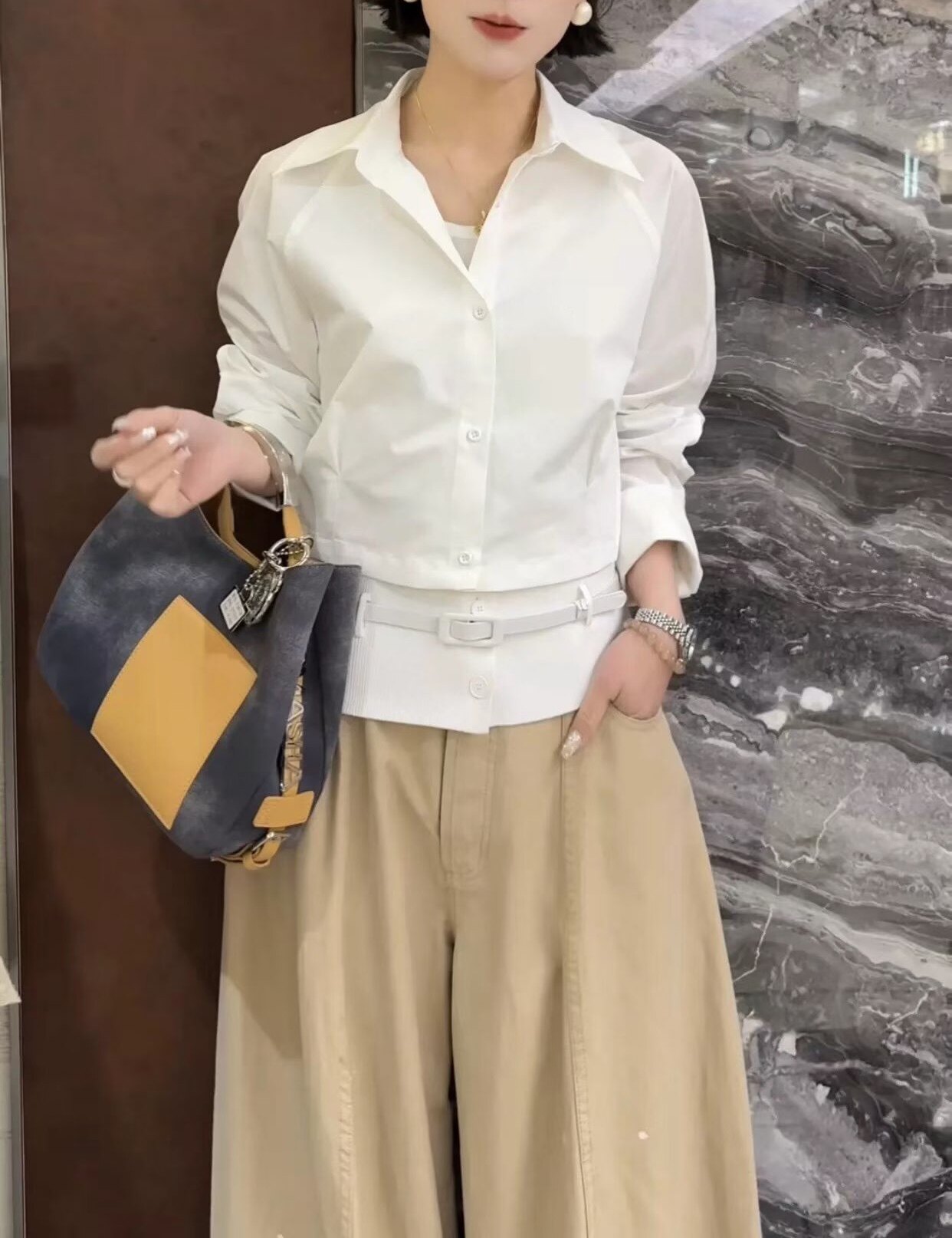 欧洲站2026春款时尚百搭法式小众翻领收腰欧式小衫衬衫背心两件套
