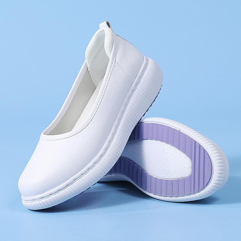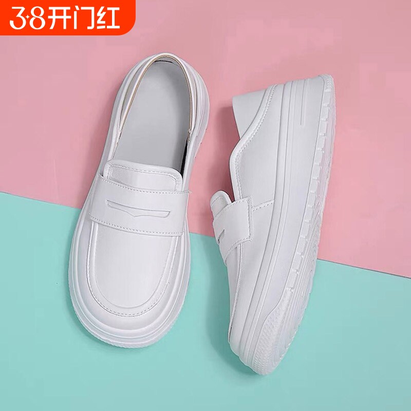 江博士护士鞋女成人女鞋软底增高透气真皮白色平底厚底乐福鞋医生