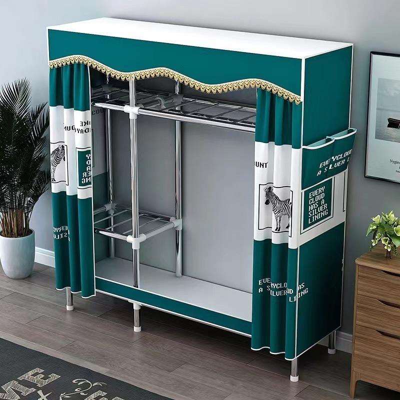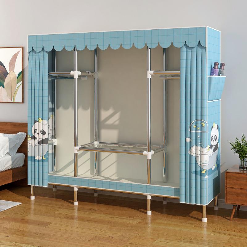 包邮布衣柜家用卧室结实耐用简易小衣柜出租房组装加厚加粗全钢架