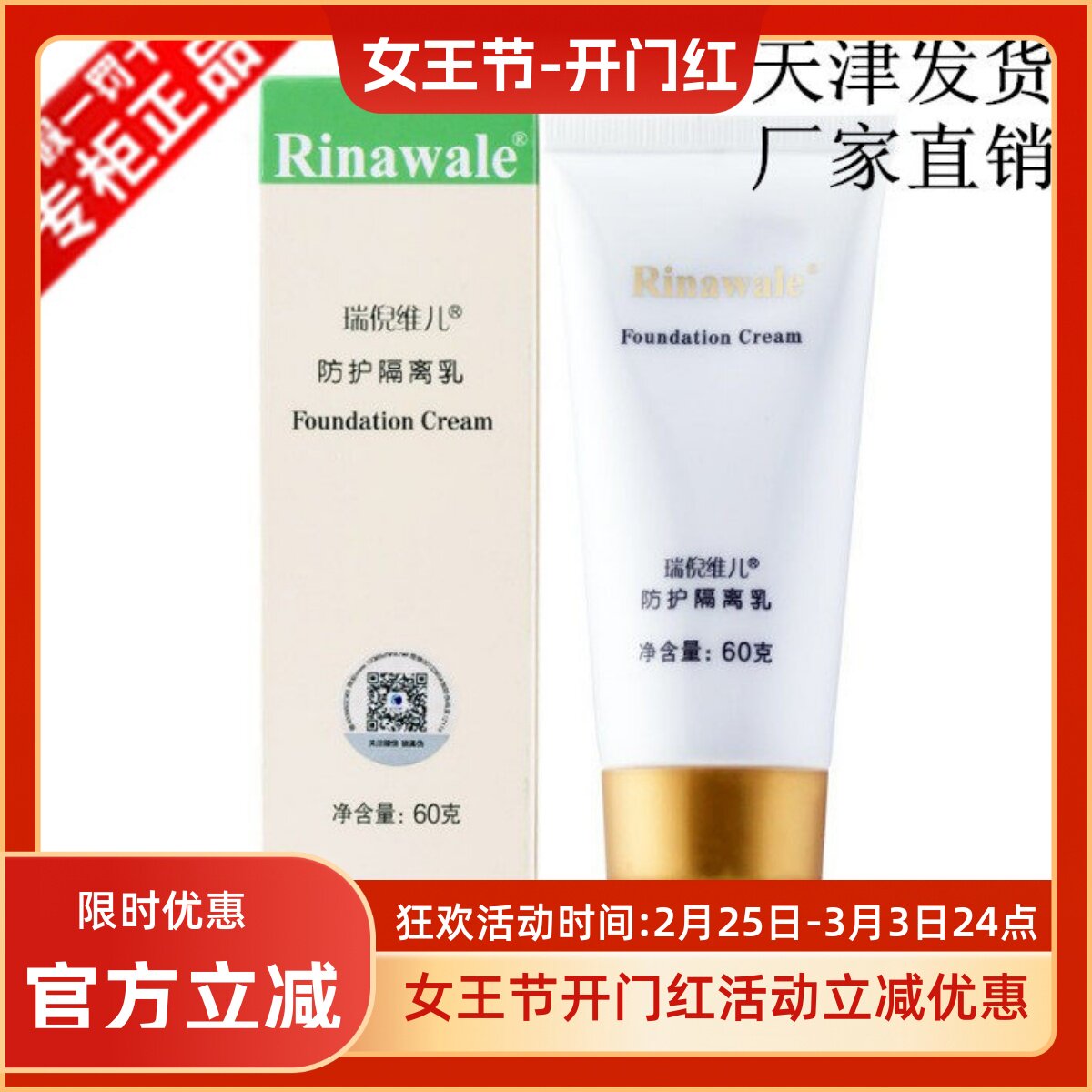 正品防伪瑞倪维儿防护隔离乳60g官网遮瑕定妆提亮肤色隔离霜专柜