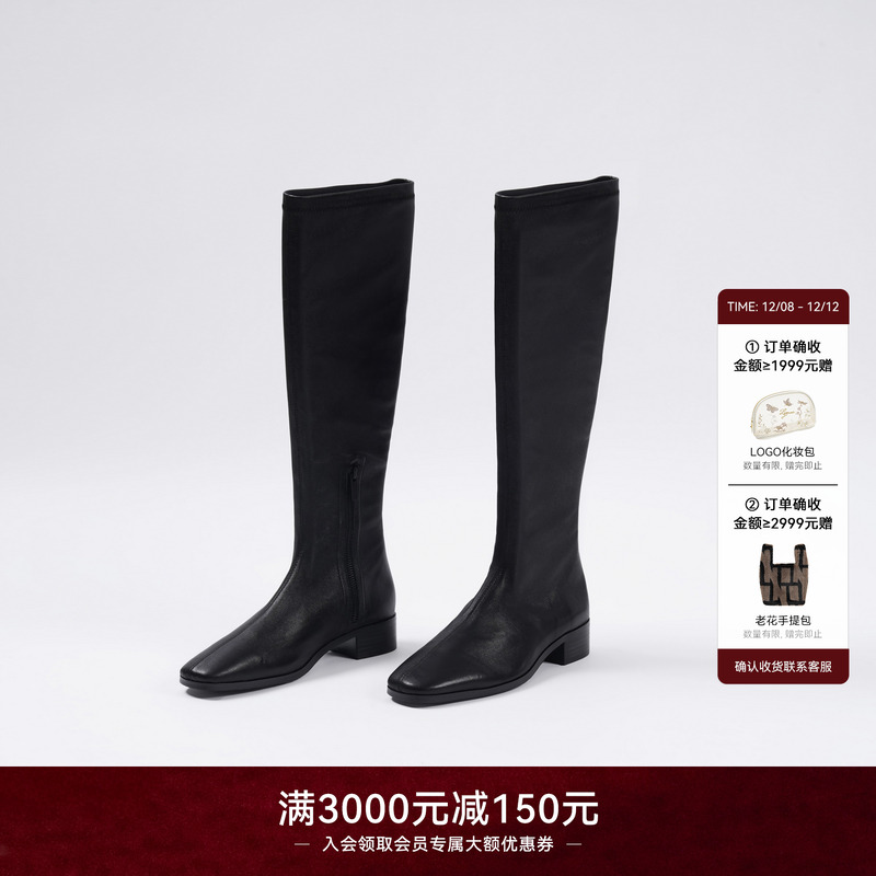 SATURDAYMODE断码撤柜弹力长靴女秋冬小香风黑色显瘦过膝靴
