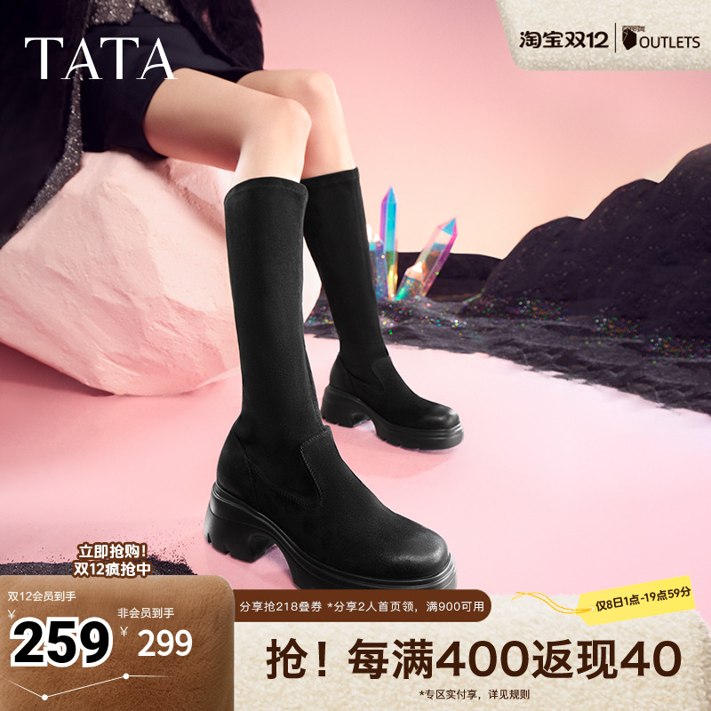 Tata他她厚底弹力长靴女靴子休闲显瘦高筒靴奥莱冬季新款7DK80DG4