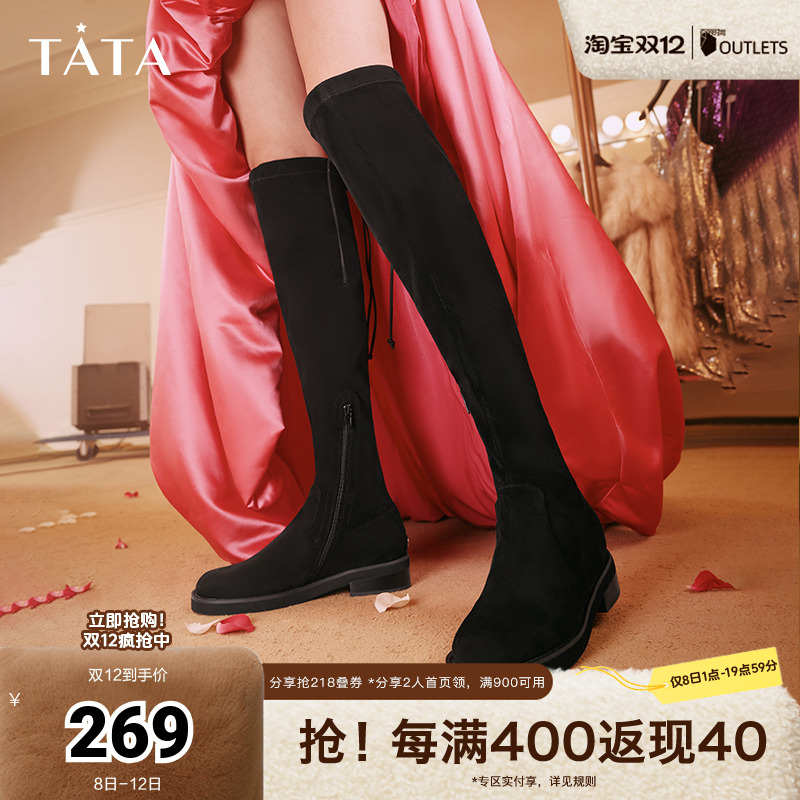 Tata他她过膝弹力长靴女法式奥莱瘦瘦高筒靴早秋季新款7TB90DC3