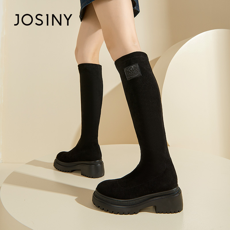 卓诗尼女鞋时尚高筒靴冬季粗跟弹力长靴女圆头防滑瘦瘦靴ins炸街