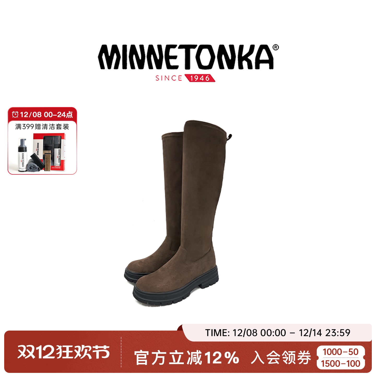 MINNETONKA迷你唐卡秋新款弹力长靴女直高筒显腿长厚底瘦瘦骑士靴