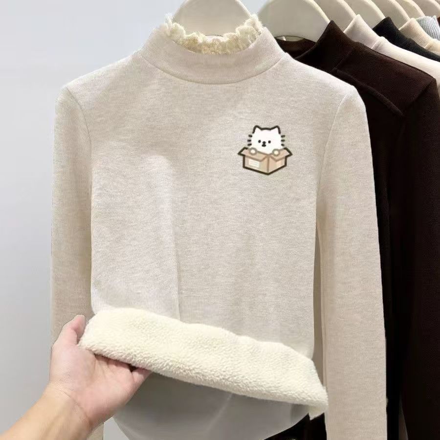 半高领正肩加绒套头卫衣女加厚爆款2025冬季新款羊羔绒内搭长袖女