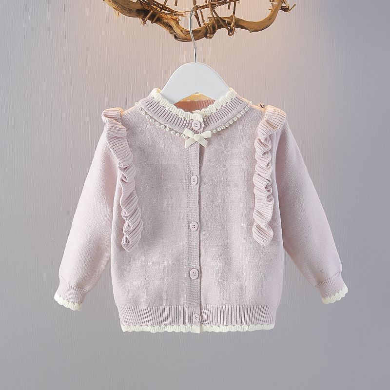 春秋款婴幼儿100纯棉公主风毛衣女宝宝荷叶边外套洋气针织开衫A类