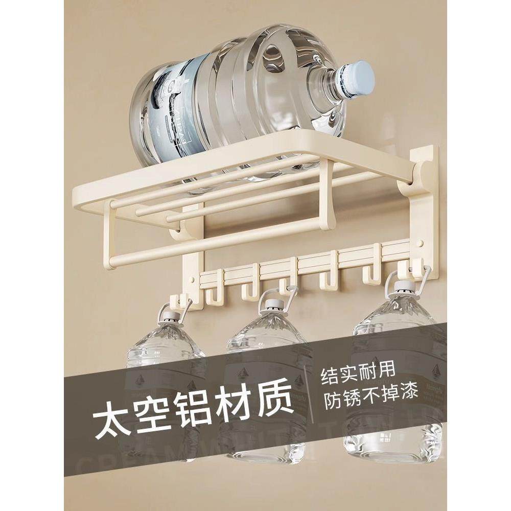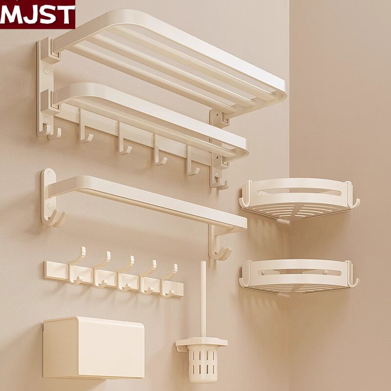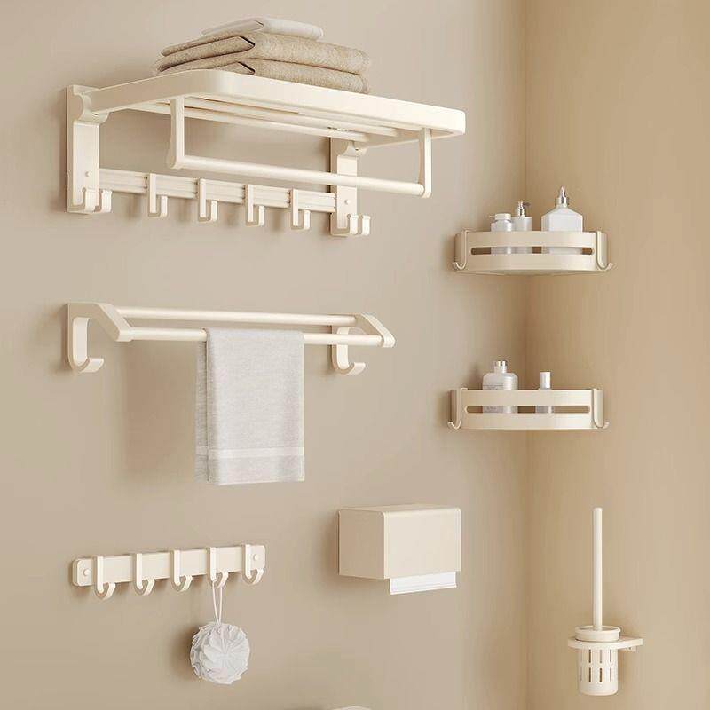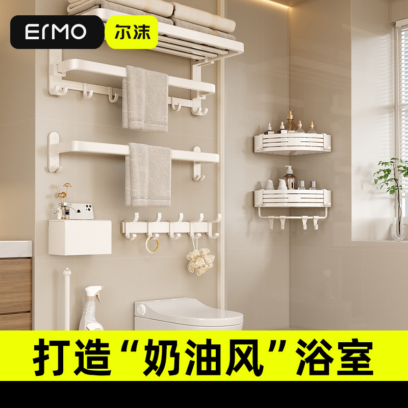 奶油风毛巾架免打孔浴室置物架卫生间太空铝挂件一体壁挂浴巾架子