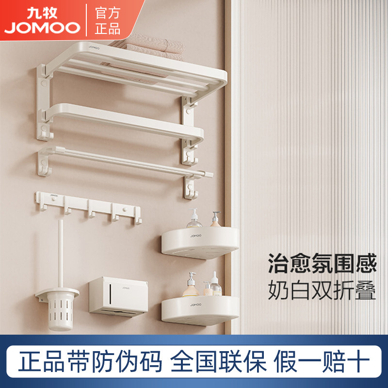 九牧卫浴官方旗舰店毛巾架卫生间置物架免打孔浴巾架浴室挂墙挂件