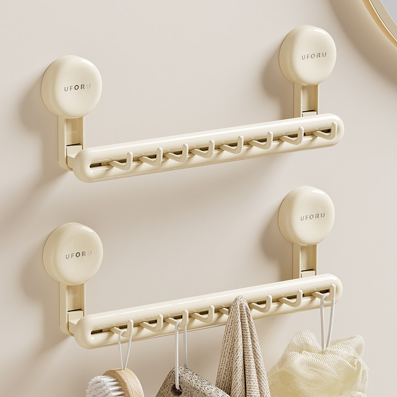 太力吸盘毛巾架浴室浴巾置物架免打孔奶油风卫生间挂件洗手间厕所
