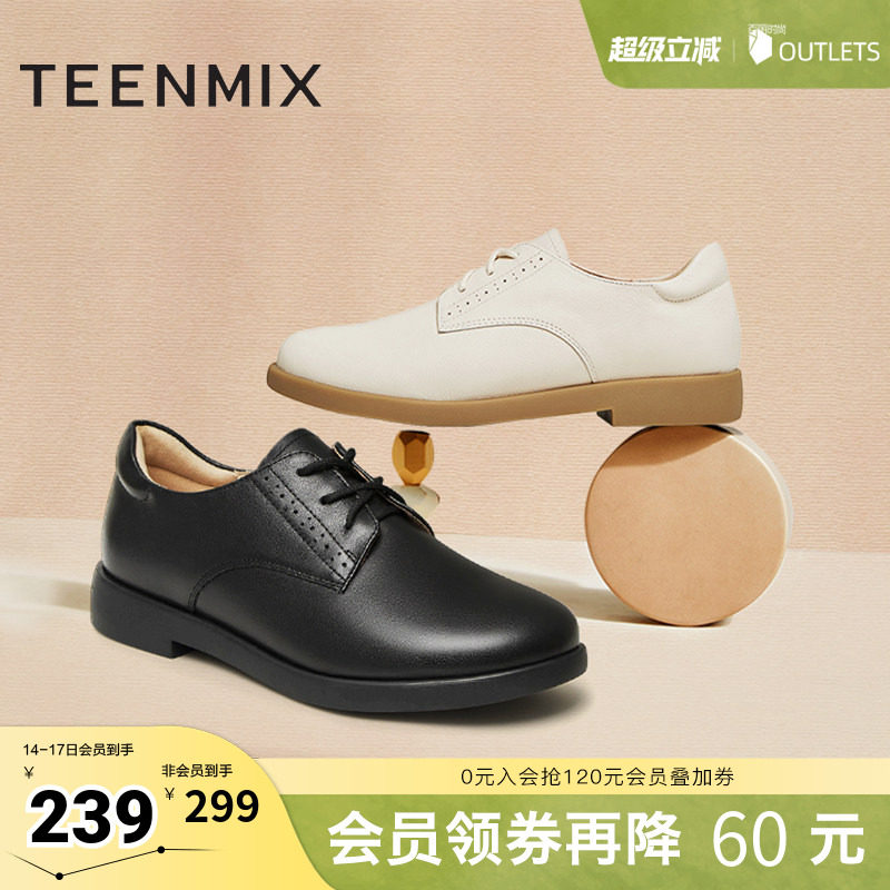 天美意英伦小皮鞋平底鞋女系带复古单鞋子春新款CCJ50AM4奥莱