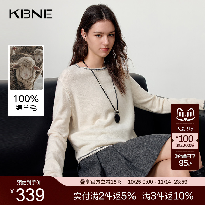 [100%羊毛]KBNE复古学院风撞色刺绣毛衣女2025冬季新款针织衫上衣