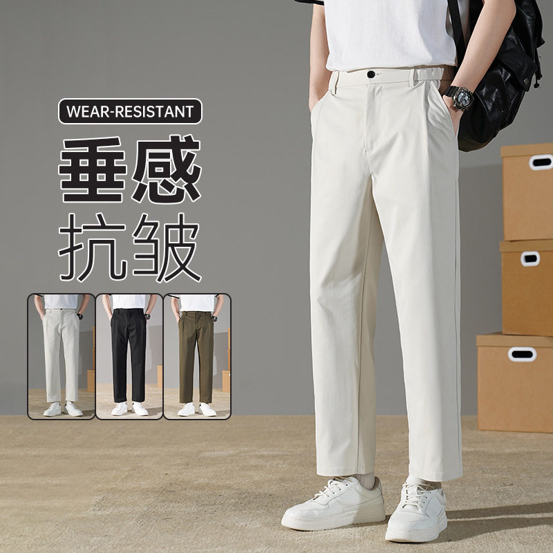 松紧腰系绳九分西裤男秋冬季宽松坠感直筒抗皱垂感加厚休闲小脚裤