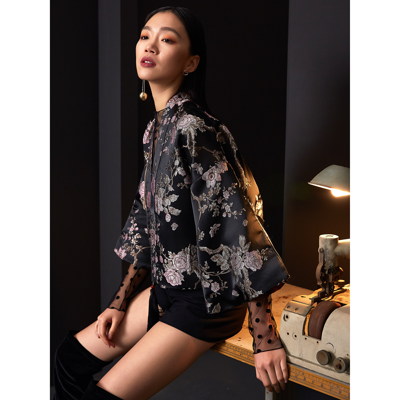 扶郎 原创设计师女装 暗黑系锦缎和风日系改良阔袖流苏唐装短外套