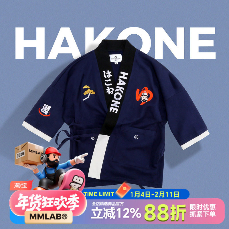 MMLABCREW MRMAI藏青5分袖刺绣日式和风汤泉加厚甚平开衫和服外套